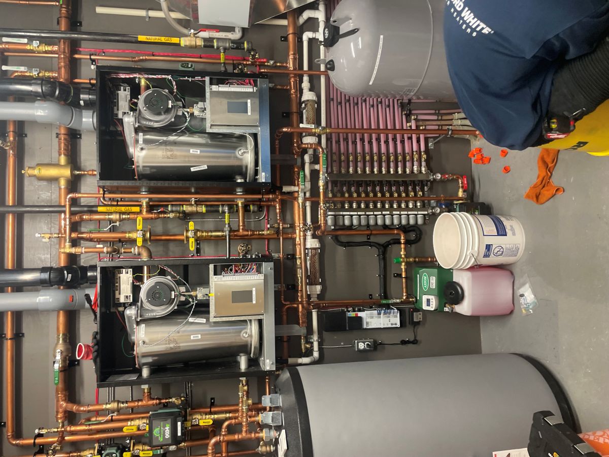 Don’t wait for electrical issues to escalate. Whether you need a quick fix or a comprehensive service upgrade, our team of certified electricians, plumbers and hvac techs can help you with all your electrical, heating, and plumbing needs. Reach out now to get a personalized quote or to book an appointment at your convenience. Experience top-notch service with YYC ELECTRICIAN. If any of our photos seem cheezy, it’s because not all of them are stock photos from an image company. They’re actually photos from us working on the job to showcase some of the more complex systems we’ve worked on. Case and point, the photo adjacent to this write up shows a complex 14 zone, 2 Air handling unit, 2 wall mounted boiler, 1 Indirect hot water tank, 6 pumps and 14 actuators combined to heat the homes basement concrete infloor radiant heat, forced air through the two air handling units, wall mounted radiators and the domestic hot water supplying all the taps. This job was out in Bragg Creek and it was a challenge logistically but we were up for it. The kind of thing we like to geek out on!